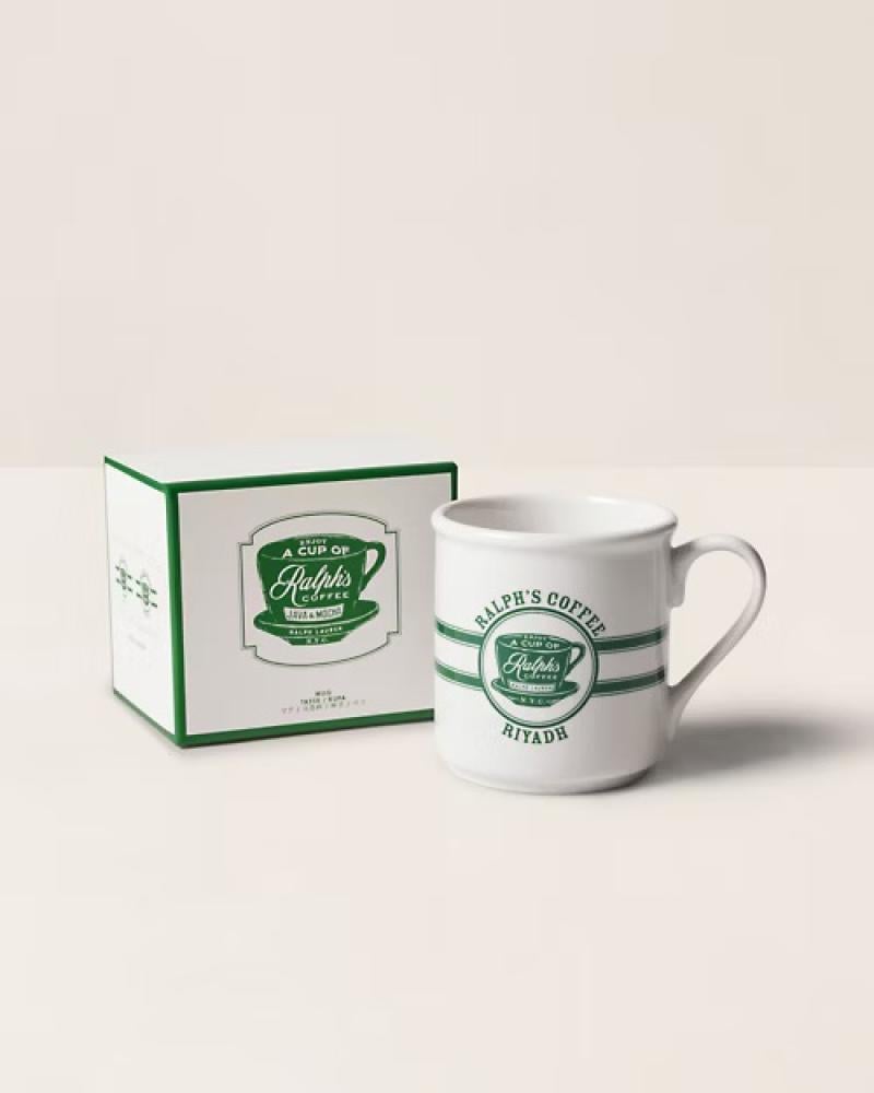 يعرض هذا الكوب الخزفي شعار Ralph's Coffee المميز الخاص ويشير إلى مدينة الرياض من خلال ملصق رسومي شخصي الارتفاع ١٢ سم × القطر ٩.٥ سم سعة ٤١٥ مل شعار رالف كوفي المميز وشعار "الرياض" على الجزء الخارجي سيراميك غسيل يدوي