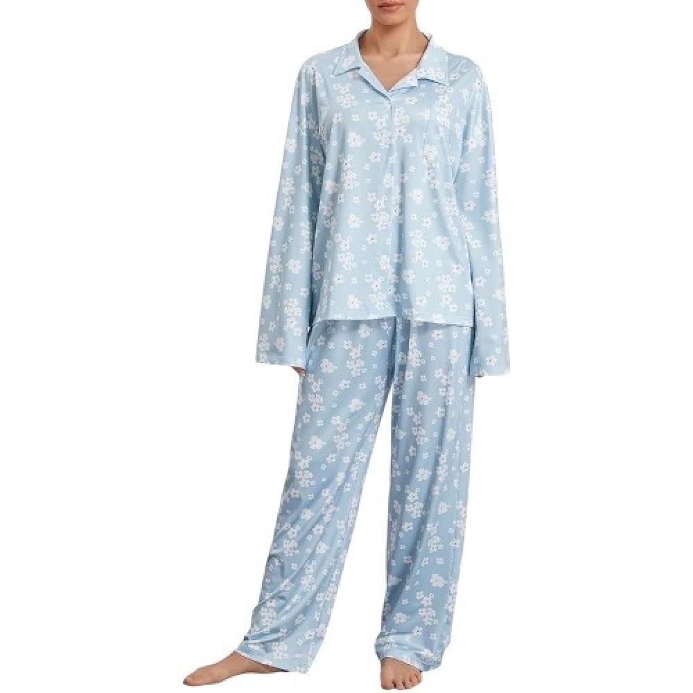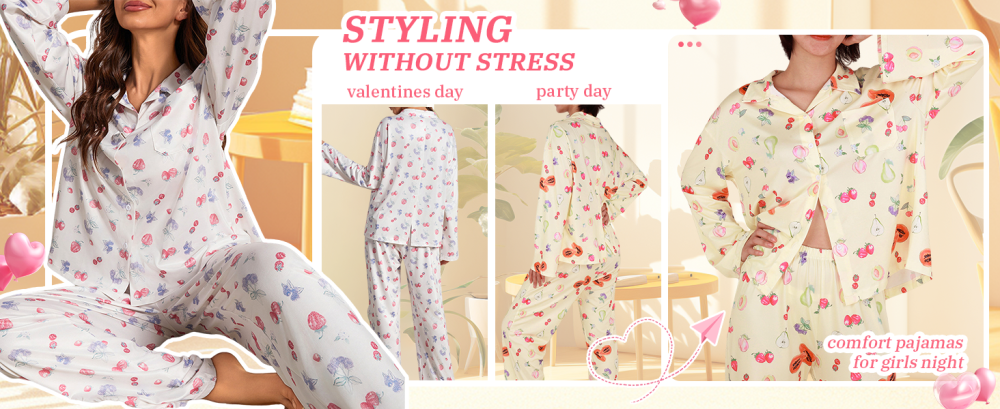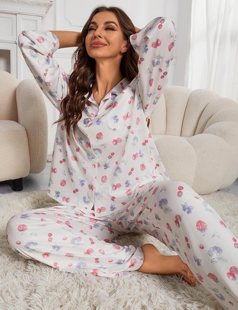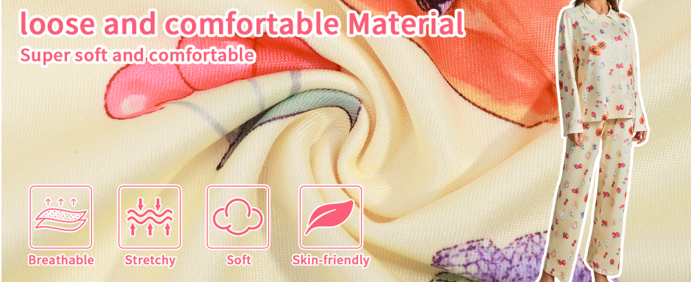 طقم بجامه نسائي مكون من قطعتين مصنوع من 95% بوليستر عالي الجودة، 5% سباندكس لطيف على البشرة ناعم و مرن خفيف الوزن ومريح في الارتداء قطعة أساسية للنساء اللاتي يسترخي في المنزل في عطلة نهاية الأسبوع وطوال الموسم