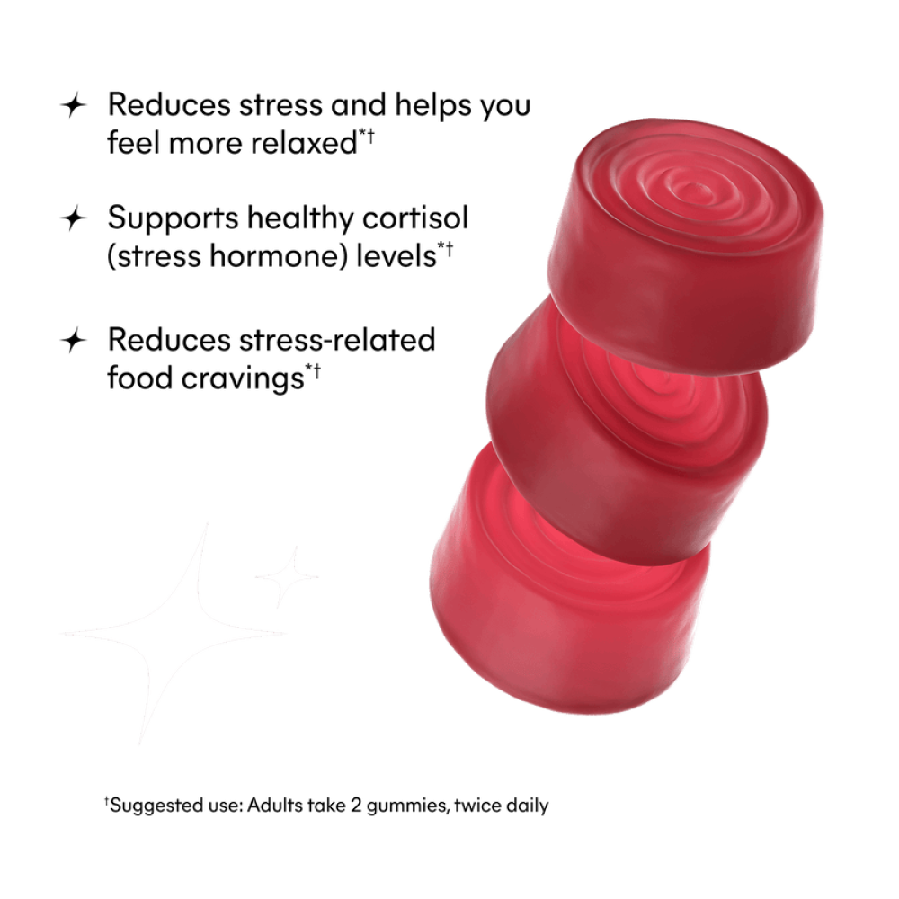 منتج نباتي مُتكيف تم استخدامه منذ آلاف السنين لدعم التوتر والاسترخاء تم استخدام جرعة تمت دراستها سريريًا من أشواغاندا الأكثر دراسة في العالم والتي ثبت سريريًا أنها تقلل من التوتر العرضي وتدعم مستويات الكورتيزول الصحية وتقلل من الرغبة الشديدة في تناول الطعام المرتبطة بالتوتر خالي من الغلوتين والجيلاتين وغير معدل وراثيًا لا يحتوي على مواد تحلية صناعية أو ألوان صناعية