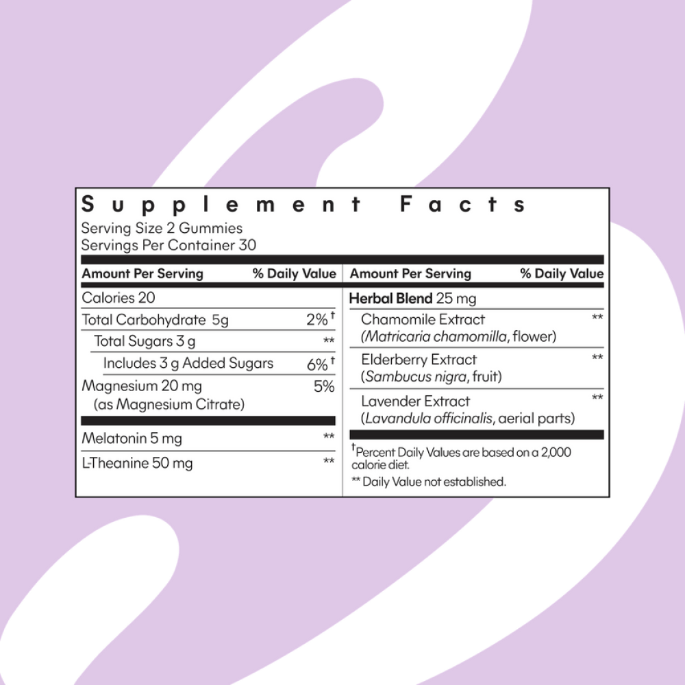 تغفو بسعادة واستيقظ بشكل جميل لتعزيز أنماط النوم الصحية تمت صياغته بالمغنيسيوم والميلاتونين وL-Theanine والنباتات الحالمة يساعدك الميلاتونين على النوم ويعزز أنماط النوم المريحة بينما يسمح لك المغنيسيوم وL-Theanine ومزيج حالم من البابونج والخزامى وElderberry بالانجراف بسلام يساعدك على النوم والبقاء نائما يعزز أنماط النوم الصحية يساعدك على الاستيقاظ والشعور بالانتعاش تركيبه نباتيه وخاليه من الغلوتين والألوان الصناعيه
